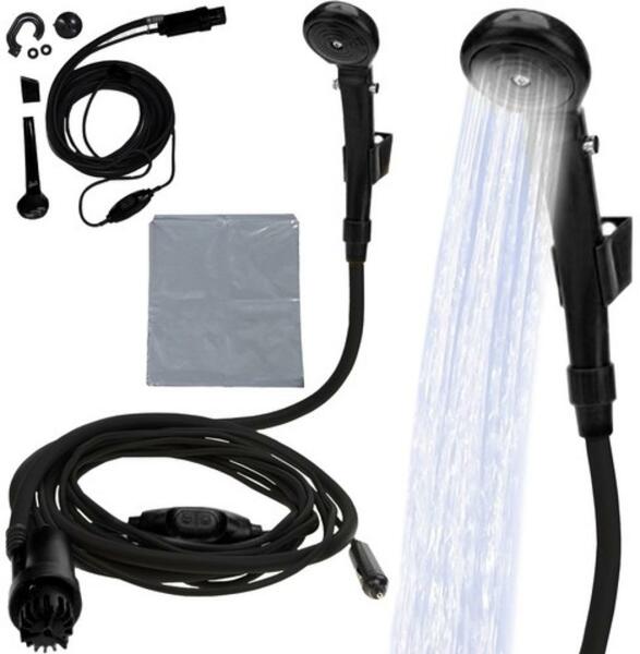 A kemping zuhany minden olyan helyre alkalmas, ahol nincs hozzáférése a vízhez - kempingben, sátrakban, a tenger mellett, sós víz öblítéséhez fürdés után - csak az autó dugójához való hozzáférés elegendő.